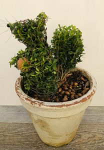 実際に出展してみて、背景に植物を植えないほうがトピアリーの形がはっきりすることに気付いたので、後日お母さんリスを別の鉢に移してみました。